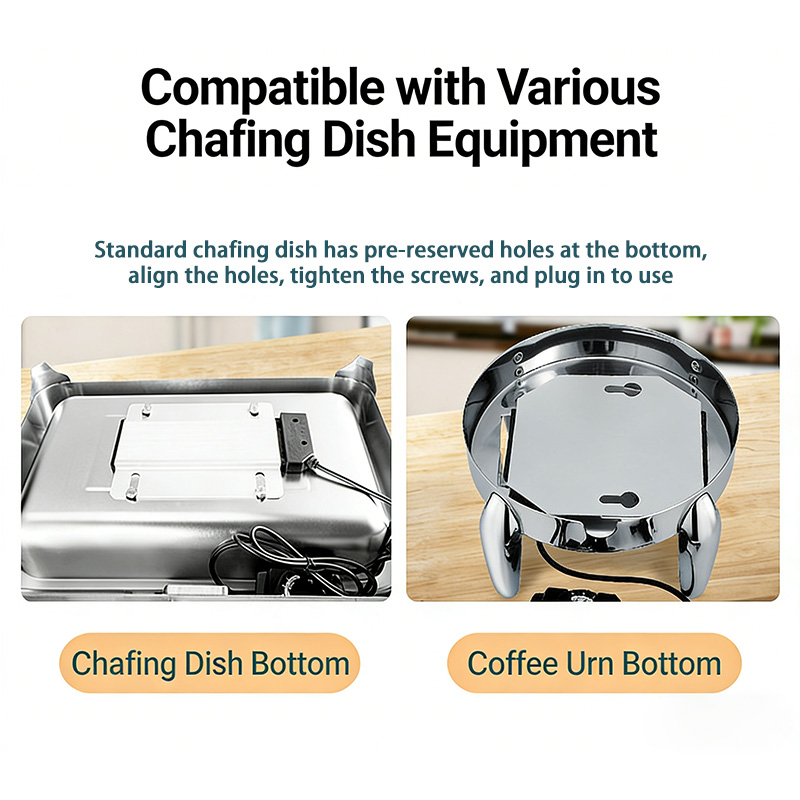 مثالية لبوفيهات الطعام، وفعاليات تقديم الطعام، ومحطات إفطار الفنادق، وطاولات تسخين الطعام في المطاعم، تُعدّ هذه الصفيحة الحرارية مناسبة تمامًا للحفاظ على الأطباق المُحضّرة، مثل اللحوم والخضراوات والأرز والحساء والأطباق الجانبية، في درجات حرارة آمنة وشهية طوال فترات الخدمة الطويلة. كما أن تصميمها المربع الصغير يجعلها خيارًا ممتازًا للاستخدام على أسطح العمل في الكافيتريات، ومناطق تناول الطعام ذاتية الخدمة، ومحطات عرض الطعام التجارية.
