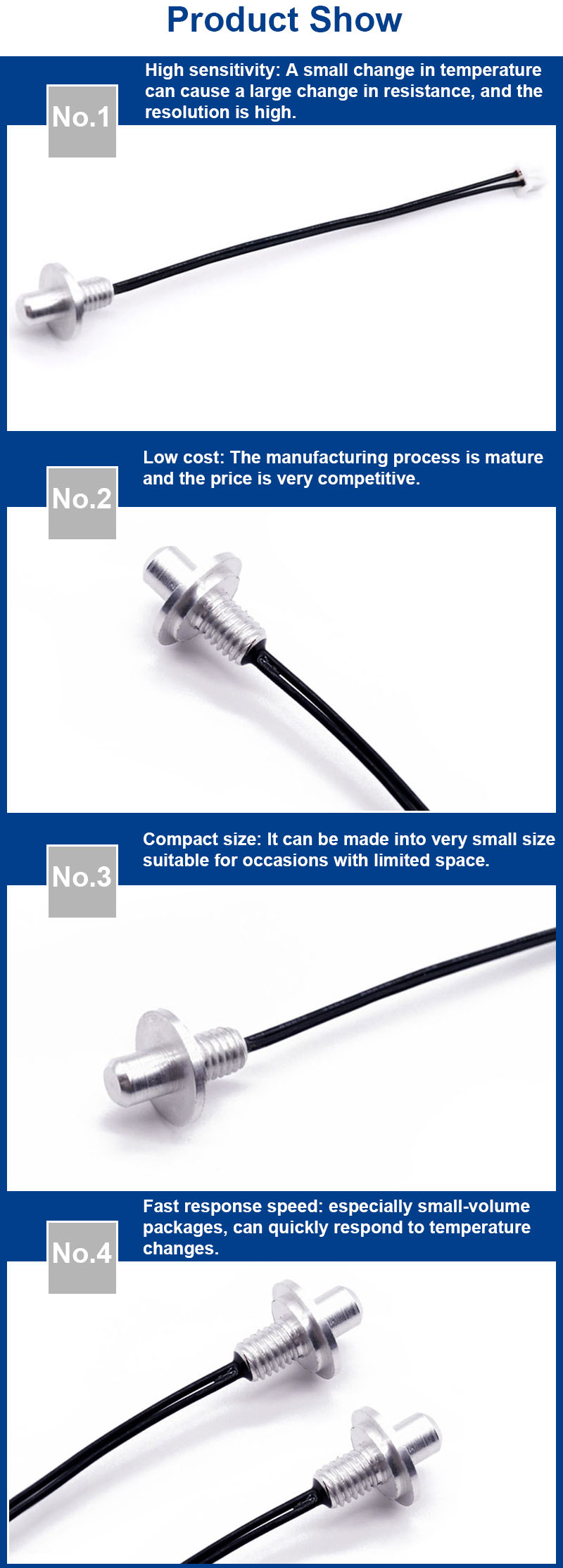 NTC-Thermistoren haben einen hohen Temperaturkoeffizienten (typischerweise -3 % bis -6 %/°C) innerhalb des normalen Temperaturbereichs, wodurch eine schnelle Erkennung kleiner Temperaturänderungen ermöglicht und eine hohe Messgenauigkeit gewährleistet wird.