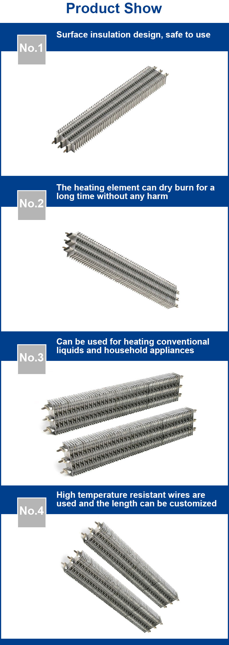Application: Suitable for heating of automobile air conditioners and other similar equipment.