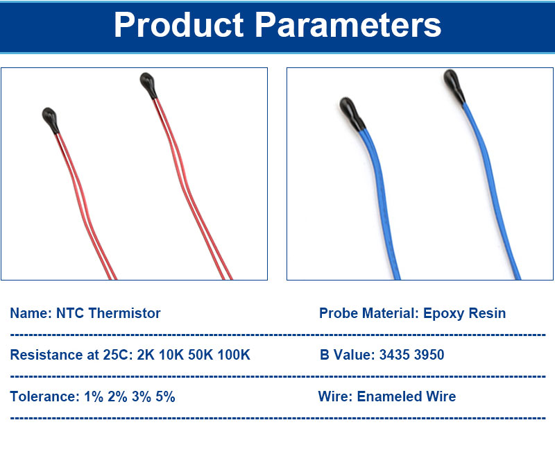 La testa del sensore è solitamente incapsulata in resina epossidica o vetro, offrendo una solida protezione al fragile chip NTC al suo interno, rendendolo resistente a umidità, polvere, corrosione, vibrazioni e urti. Grazie ai cavi flessibili smaltati, la struttura complessiva è estremamente robusta e durevole.