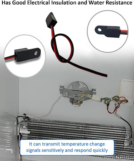 Materiale di alta qualità: il termistore del frigorifero è realizzato in materiali plastici e in gomma di alta qualità, con un buon isolamento elettrico e resistenza all'acqua e può trasmettere in modo sensibile le variazioni di temperatura