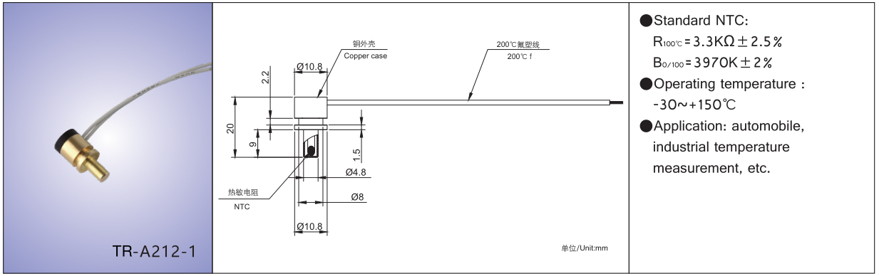 | NTC standard | R25℃=100KΩ±1% |