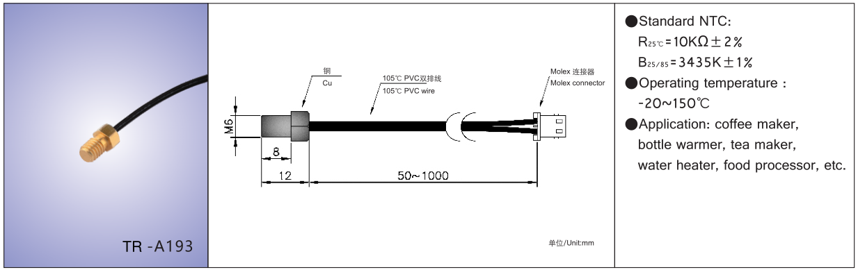 | NTC standard | R25℃=10KΩ±1% |
