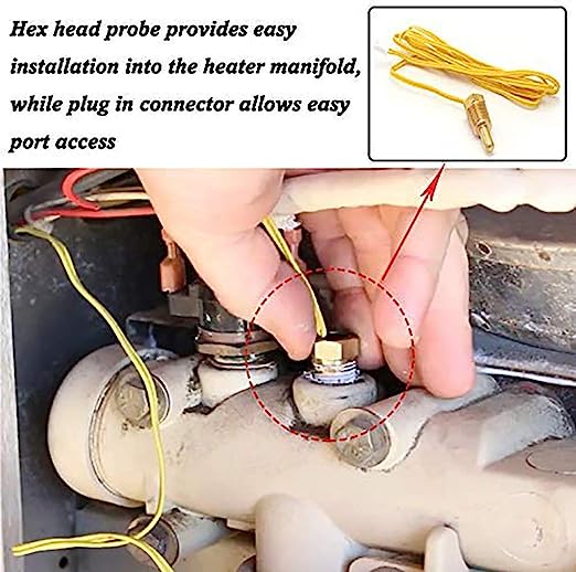 Hex head probe provides easy installation into the heater manifold, while plug in connector allows easy port access.
