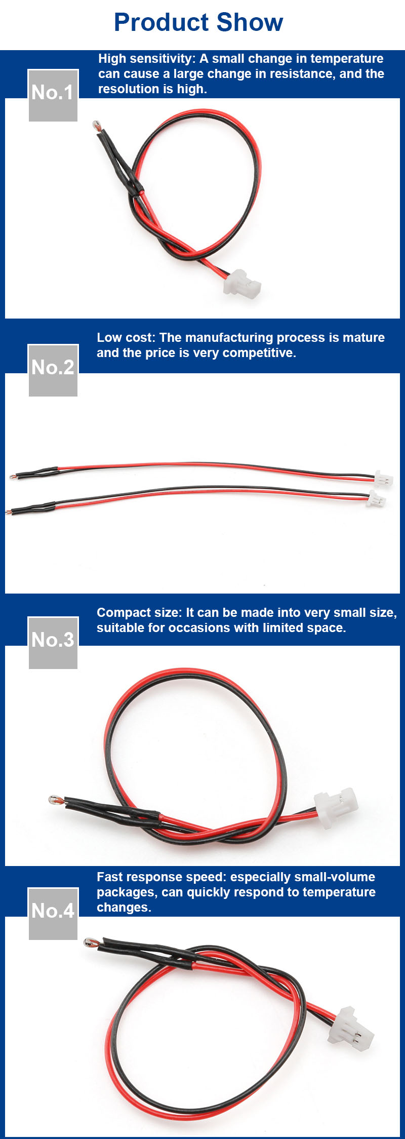 With 1m long high temperature insulated wire. |