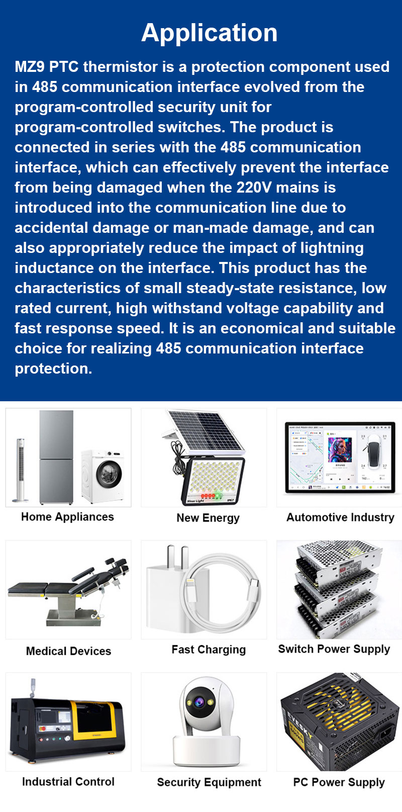 MZ9 PTC thermistors are widely used in various communications and electronic devices requiring reliable port protection: