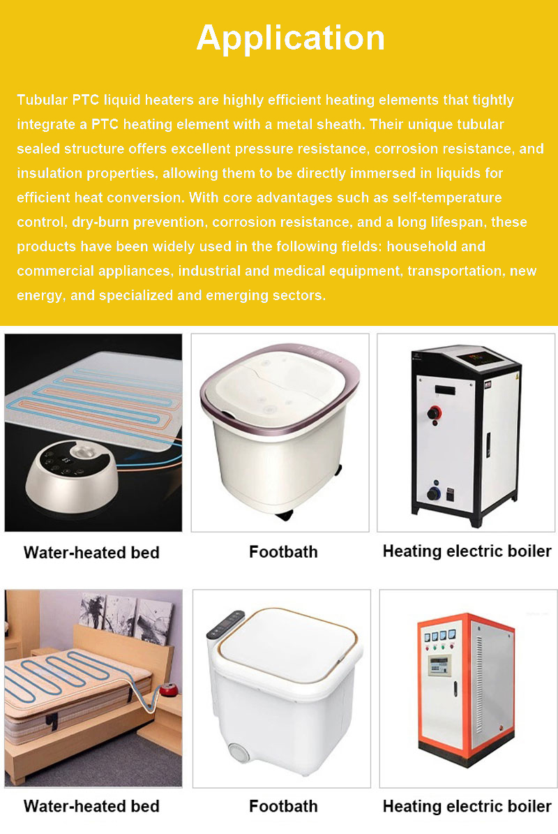 这款PTC浸入式加热器适用于电水壶、热水锅炉、茶壶、咖啡机和商用饮水机。它能快速安全地加热饮用水,满足饮料、食品制备或任何需要可靠、节能热水供应的应用需求。