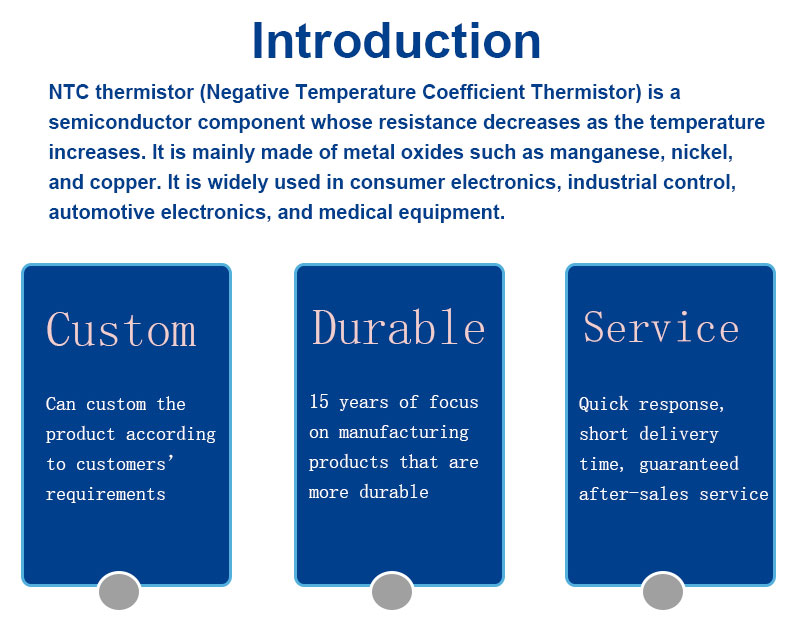 环氧树脂封装: 黑色环氧树脂材料包裹着内部的NTC芯片,具有良好的绝缘性、机械强度和耐候性,能够有效防潮、防尘,抵御日常环境中的化学腐蚀,确保长期稳定性。